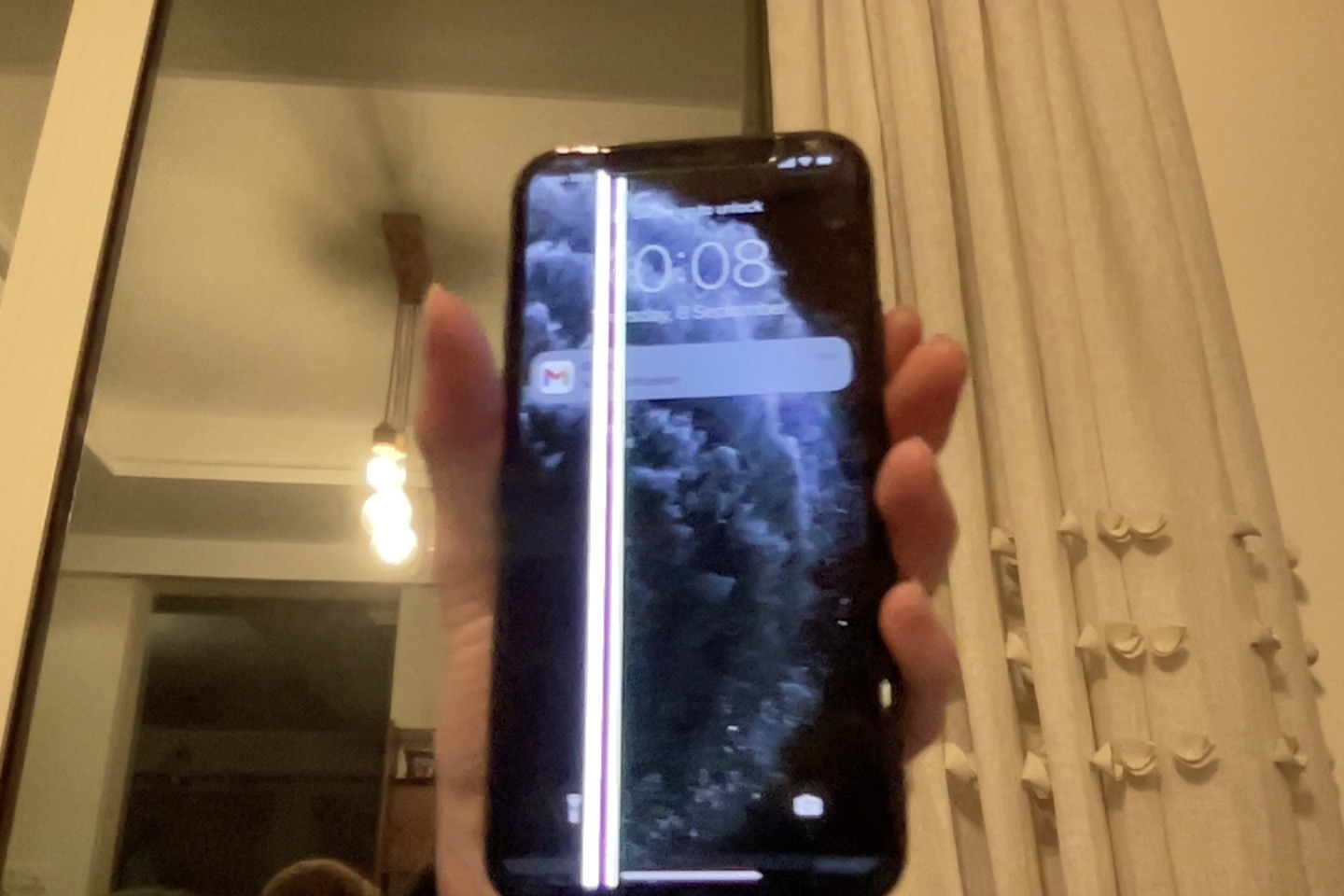 My iphone has gotten wet when I was cycling in Switzerland and now has a line down the screen.