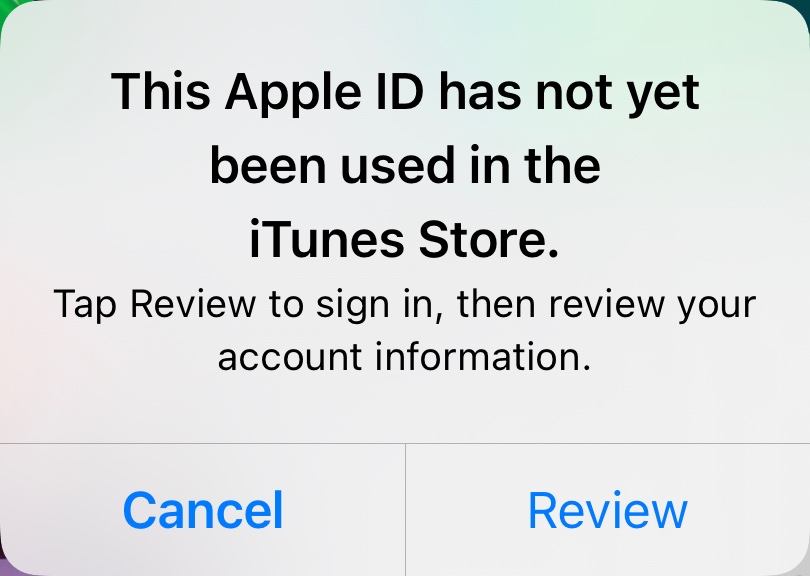 This Apple ID has not yet been use in the iTunes Store tap to review account information