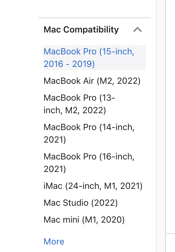 You'll need to pick out your model; Note the "More" button. Apple logo > About this Mac will tell you your model's details.
