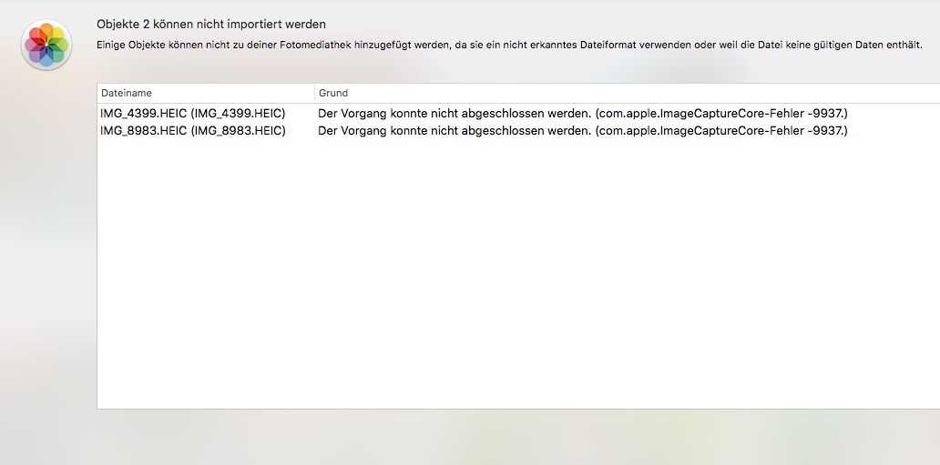 I get get also an error message, when I tried importing pictures into Photos. The error message is -9337. I tried to import pictures I made today and also a picture I made some time ago, and got the same error code.