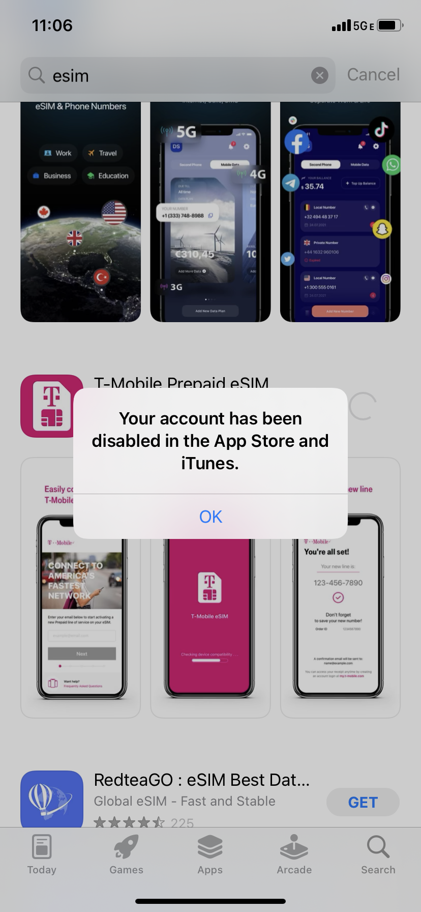 If you see a message that says "Your account has been disabled in the App Store and iTunes," contact Apple Support for help.