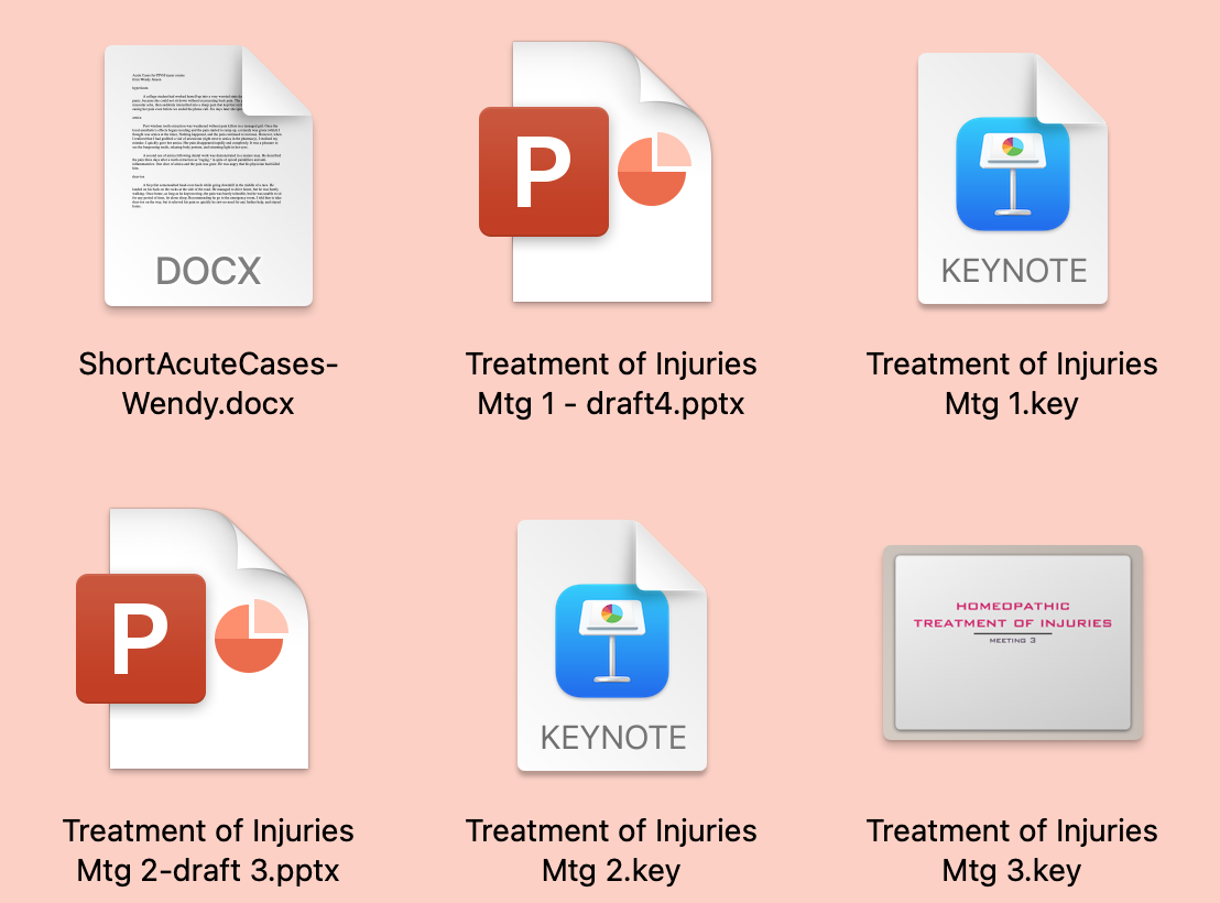 I am using OS Monterey. An odd thing happening is that, spontaneously, the appearance of the file icons is changing. Attaching a picture to show what I mean. I prefer the one that Treatment of Injuries, Meeting 3.key but it is changing to Treatment of Injuries Meeting 1.key appearance.
