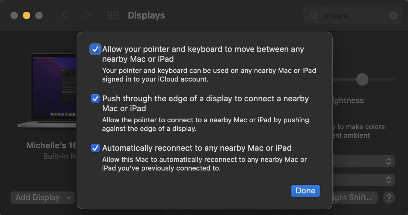 My universal clipboard isn't working between my mobile devices and my MacbookPro. It works between my iPhone and iPad, but not between my iPhone and Macbook or my iPad and Macbook. I created a new user on my computer to test it and it works on that new user, but I'm not sure why it's not working on my primary user.
