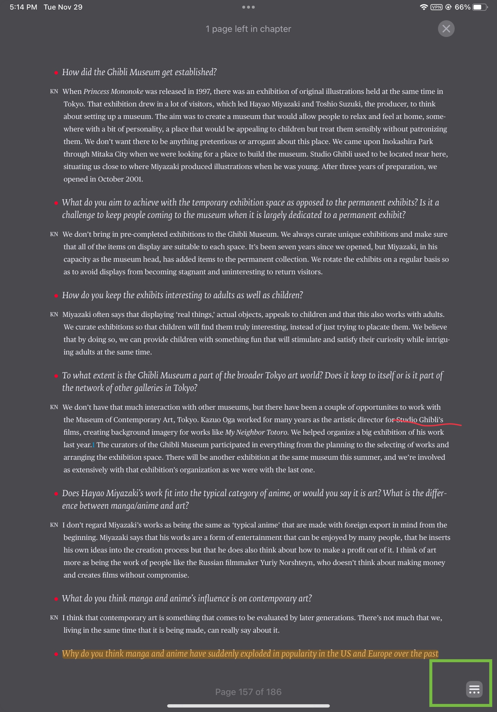 table of contents icon -> Notes -> Share icon -> Edit Notes -> Select All -> Share -> Mail