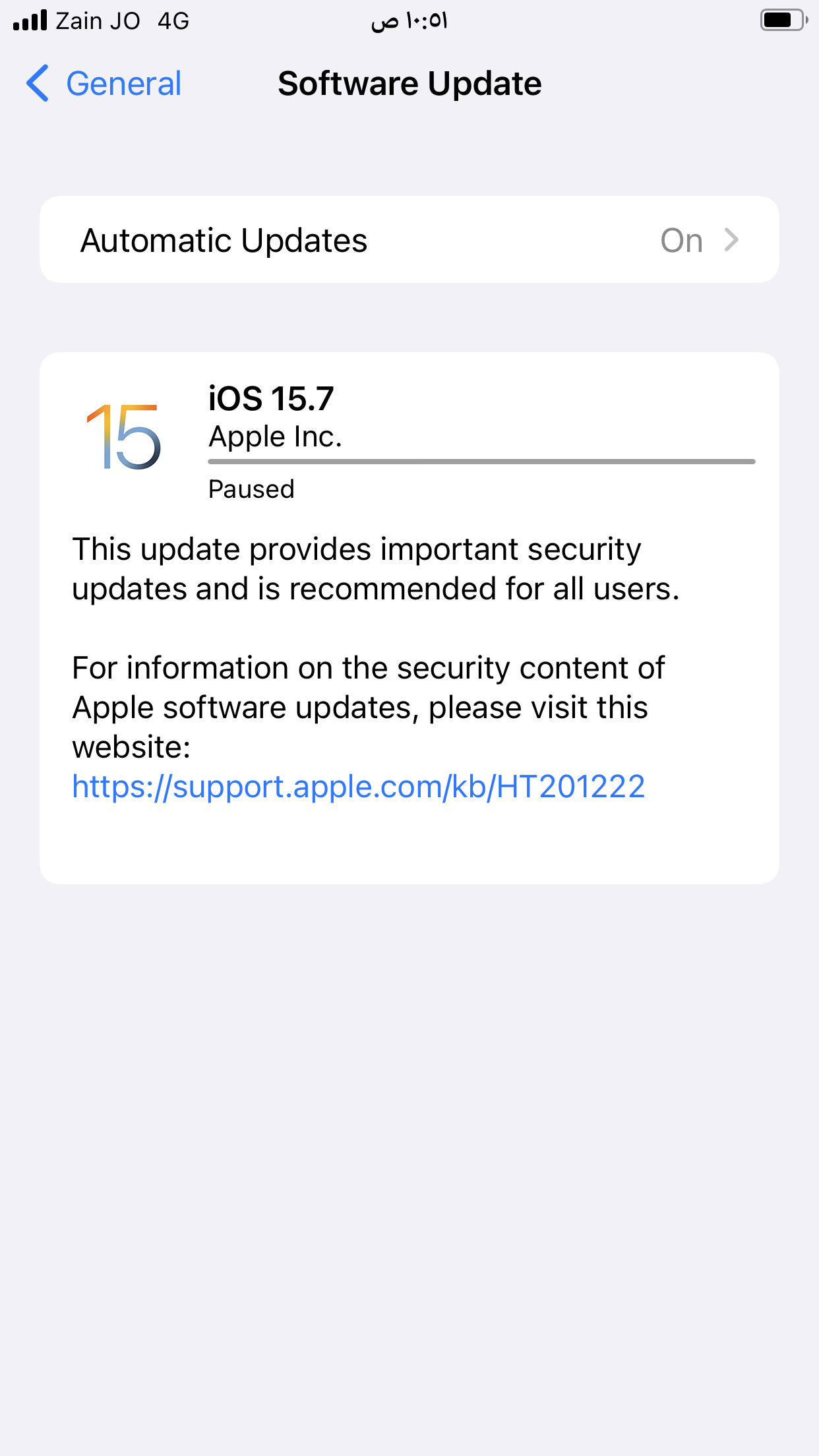 لدي مشكلة جهازي لا يريد تحديث ios15.7