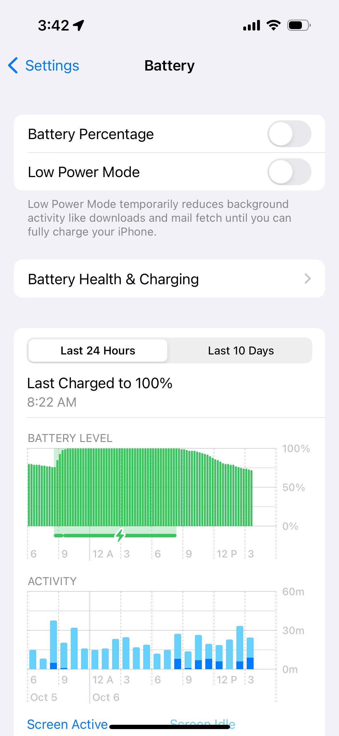 For example, I leave the house at 7.30 in the morning with 100%, the iPhone then sits on my desk until 5 pm, by then I have maybe 85-80% left, even though it's just a few notifications coming in during the day like mail, WhatsApp, etc.
