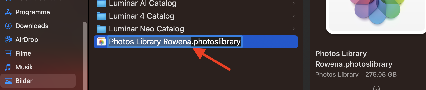 We have three photo libraries and often my wife gets fuddled up as to which she should open as the library names only show the full name when moused over. Ex: Ots Library.photoslibrary