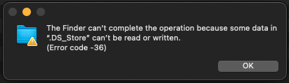 Now, when trying to copy from one Ext HDD to another, I get this error message: