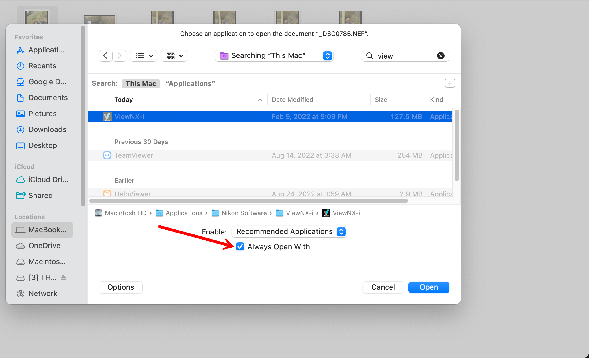 When I right-click an NEF file and choose an App it should always open with, the command works temporarily and as soon as I change focus to another folder on the same drive it reverts back to previous default application.