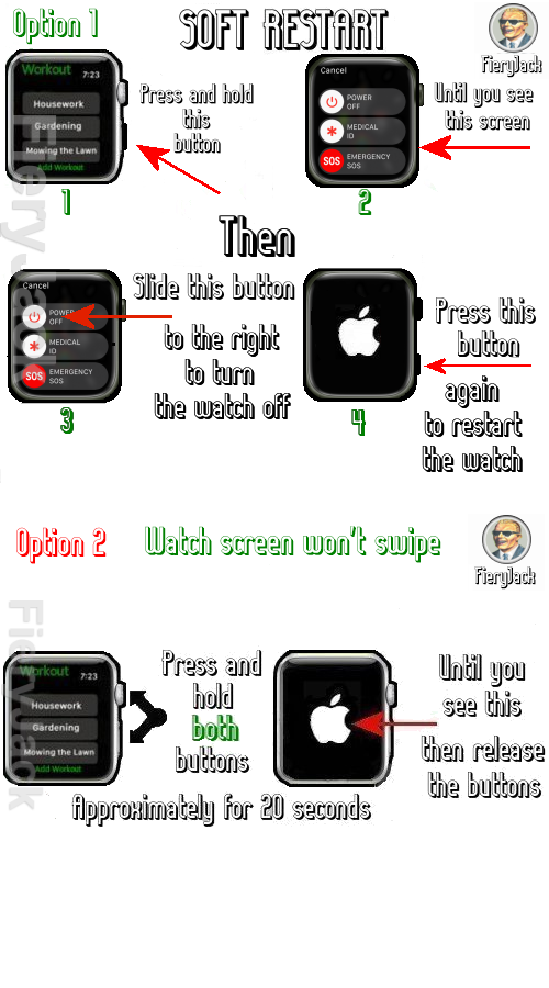 I have a red dot on top of Watch face that is not responding to swiping down or holding finger on to get to notifications. I also cannot get it to swipe left to get to the mute ringer, theater mode, airplane mode screen.