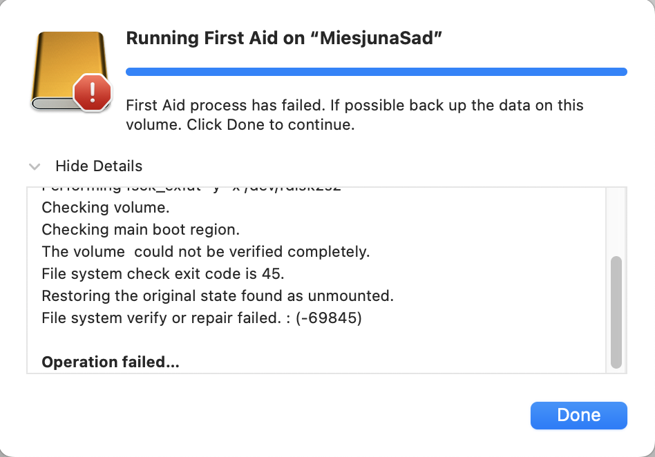 I have Mac Book Pro (13-inch, 2019, Two Thunderbolt 3 ports) and macOS Monterey. Finder doesn't show my external ExFat disc. I can only see the disc in Disc Utility, which shows the name of the disc on light grey. When I try to mount it, I get "Could not mount (com.apple.DiskManagement.dis enter error 49244.)".