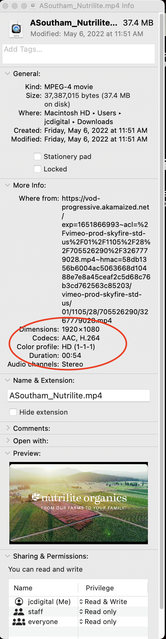 I used to be able to see the Color Profile of a video with the Inspector in Finder: