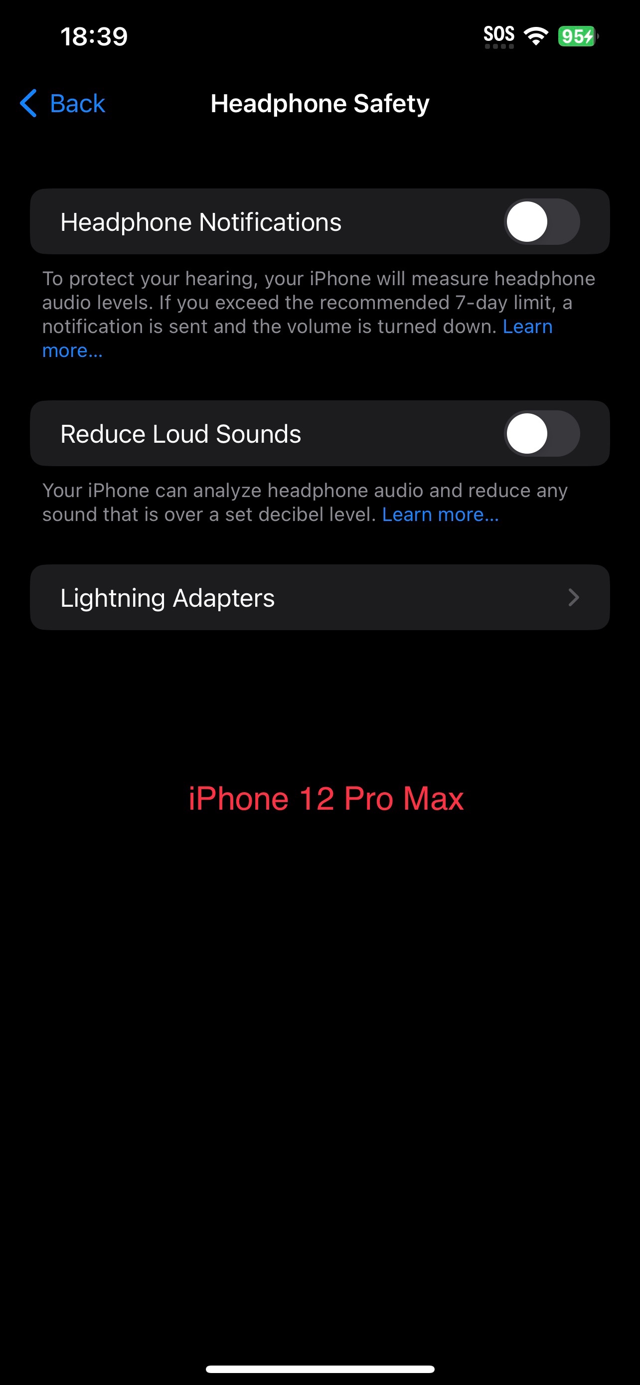 - On iPhone 12 Pro Max: Settings -> Sounds & Haptics -> Headphone Safety -> Headphone Notifications CAN be Turned ON or OFF - Refer to screenshot - This is CORRECT (for Canada).