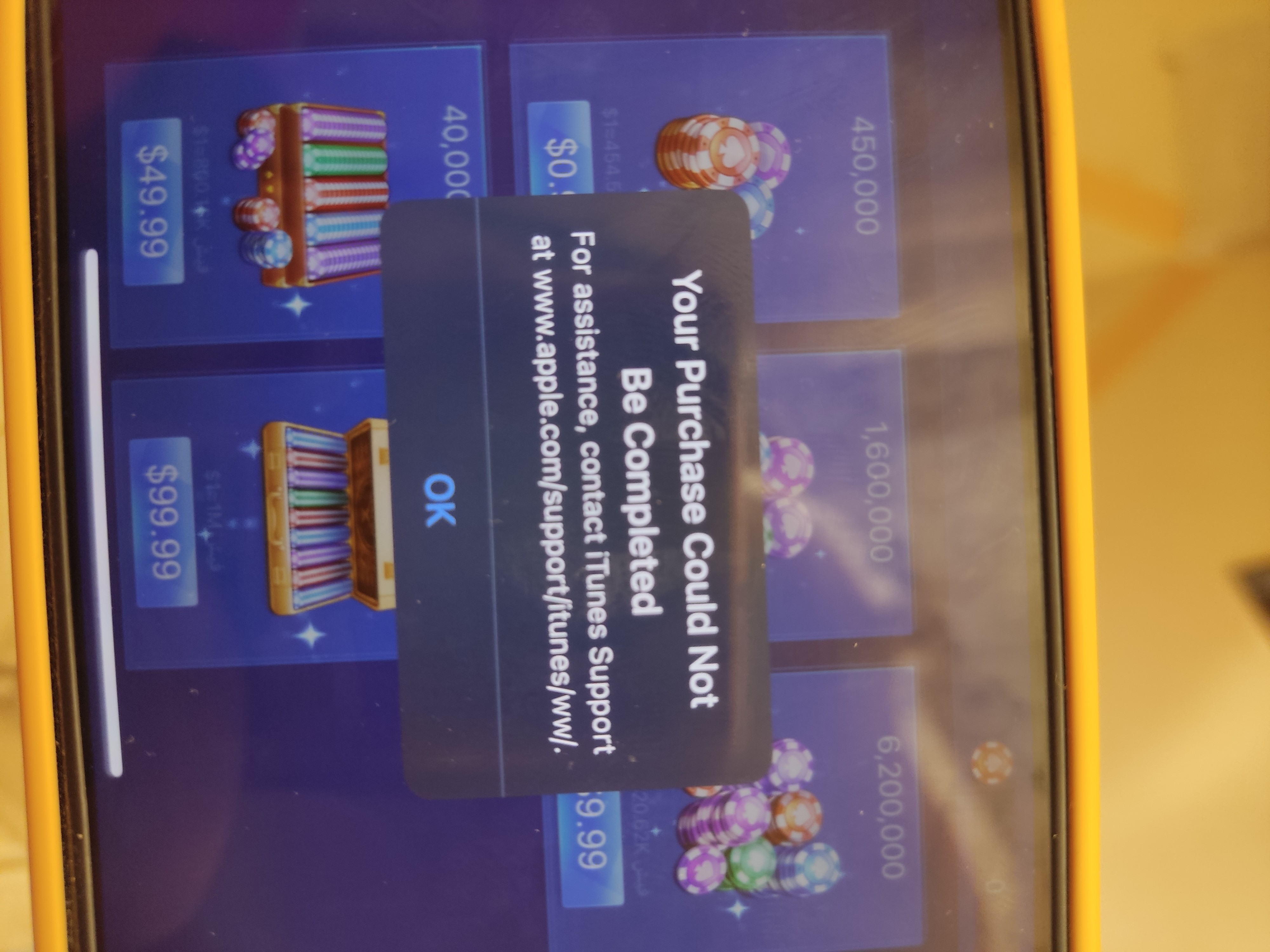 Hi may apple id is problem purchase i need buy chip in game but the problem is your purchase could not be complete