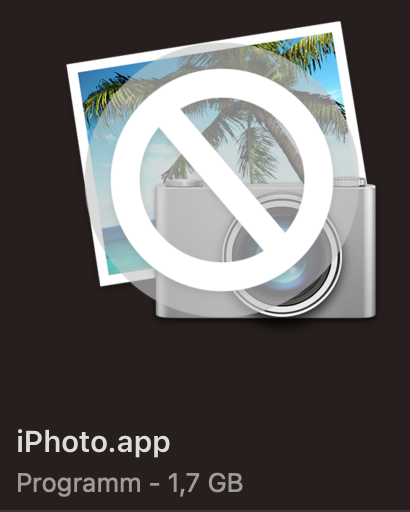If you have no longer any Mac compatible with iPhoto, delete the app - Photos does not need it. Otherwise save it on an external volume, just in case you need to open old iPhoto Libraries, to compare the metadata of your photos in Photos and iPhoto. You may mot be able to get iPhoto back, if you delete it. If your Mac is not able to run iPhoto any longer, the app icon will be crossed out, like below.