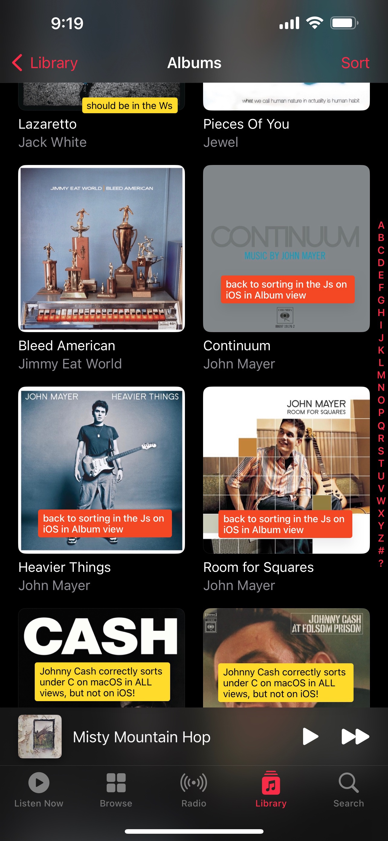but wait, there's more! iOS Apple Music FAILS to honor my custom sort fields in the same view!