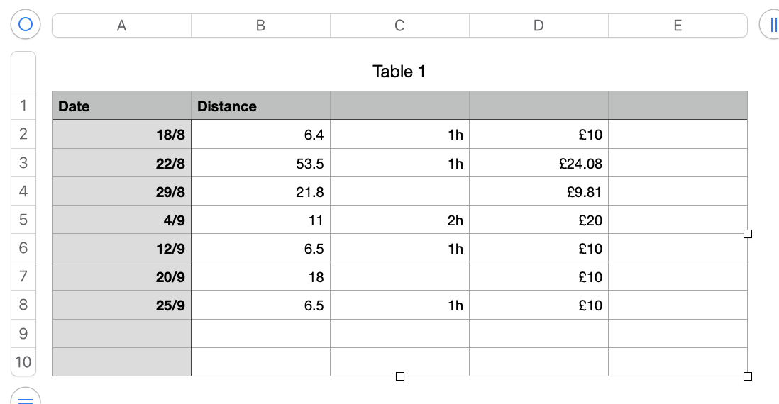 What I am trying to achieve, but just keep getting lost is Column D is per formula, however I would like it to be able to take into account column C. If Column C =1h, then Column D should be =IF(B2>20,(0.45×B2),"£10") but add an extra £10 to the final value. If Column C is blank than formula in D to work as it is at moment. And if Column C is >1h, then the final result in D to increase in increment of 10, so 1h=10, 2h=20, 3h=30 etc etc.