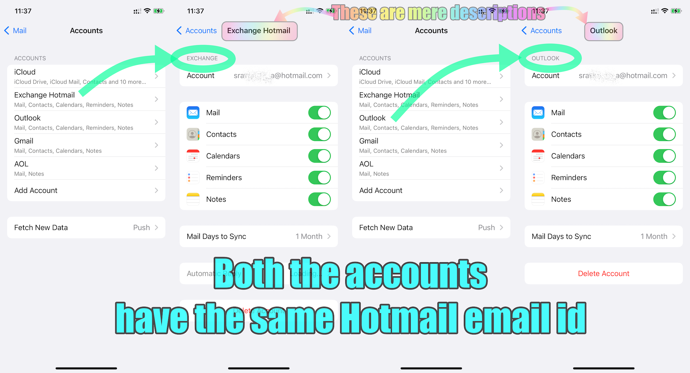 Adding a Hotmail email account to my Mail App..