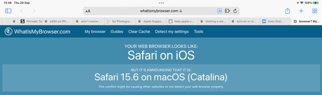 When using Safari on your iPad, the browser user-agent can operate in one of two modes - these being Desktop or Mobile. When used in Desktop mode, the user-agent presents itself as Safari for a Mac computer. You can verify this for yourself using your Safari browser: