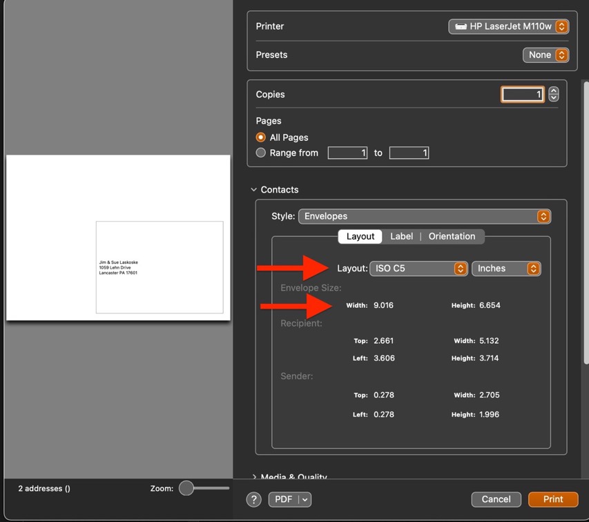 I have created a custom envelope size on my computer (8.75x5.75). It's the size of a greeting card, or a regular piece of paper folded in half. It's called envelope A9 in online lists of envelope sizes, but is not included in the list of paper sizes available on my HP Office Jet Pro 9019 printer. I've looked all over the HP website and followed the instructions to create a custom paper size and it shows up in the list on my computer but not in the list of paper/envelope sizes on the printer. When I set the printer to custom size, it doesn't recognize the size from my computer and instead prints like a #10 envelope. Is there a way to either add the size to the printer, or to get the printer to recognize the size coming from my computer? If this question should be on another forum, please let me know. Thanks very much for any help.