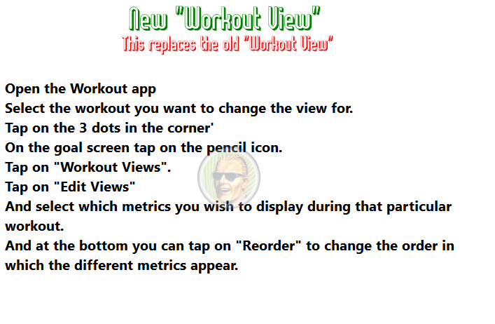 How can I edit the screen face from the apple watch workout app, with the last watch OS update? I would like to chose which data from the activity fit me better for each training’s sessions. For exemple, the running activity I would only like to see the speedy, calories and miles.