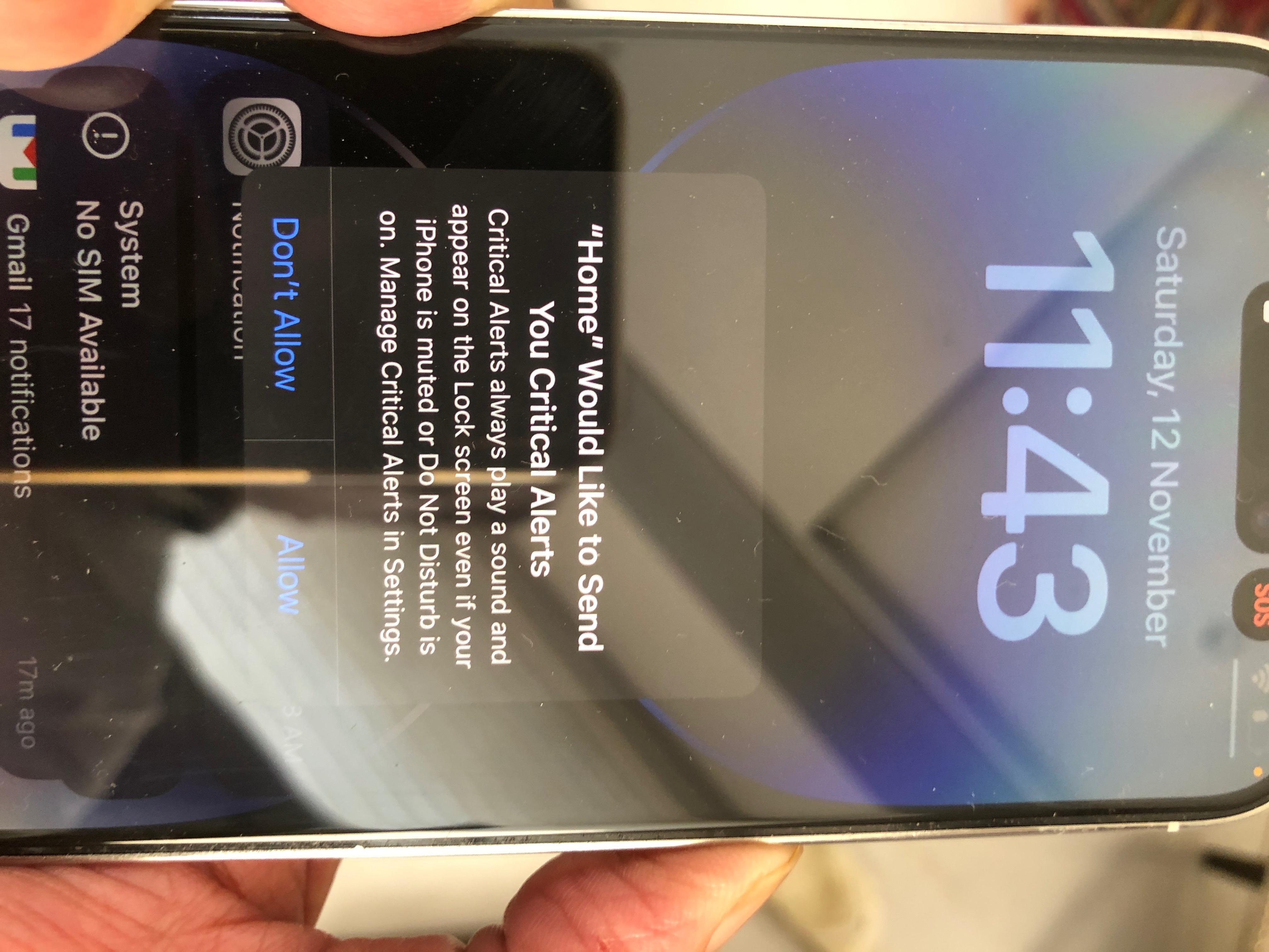 iPhone stuck on Home Critical Alerts