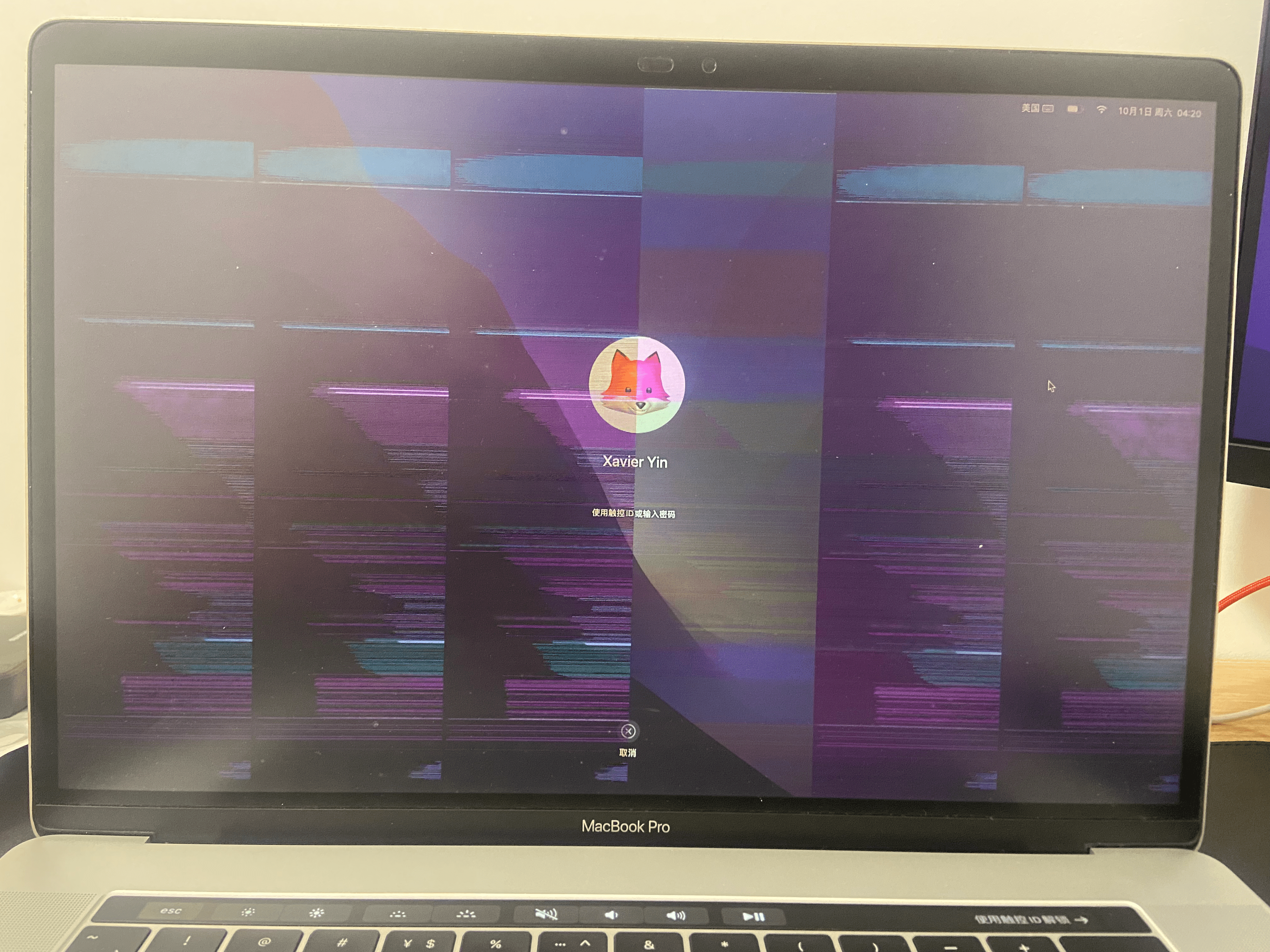 Six columns and a lot of horizontal lines in display of MacBook Pro 2018