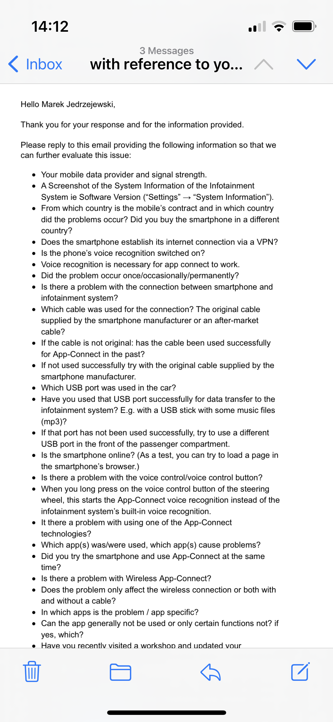 Both iPhones have the newest updates, the car also. Restarting the iPhones or the car infotainment system doesn’t help.