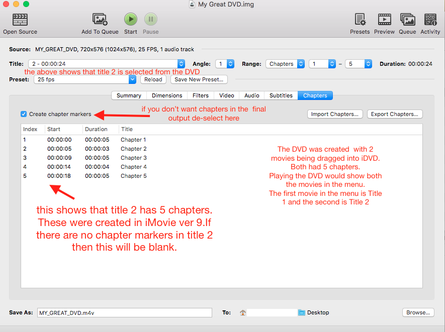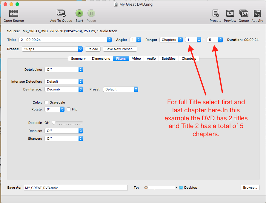 How to transfer old family DVD movies, including intro & chapters, in mp4 format via Handbrake