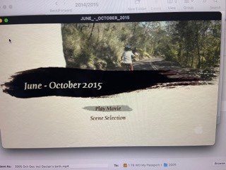 After I had created the movies including chapters in iMovie back in 2015, I uploaded it to iDVD to create an intro with a theme and music etc. Below is the intro of the movie (the picture is a moving video and there's background music). You can choose to "Play movie" or "Scene selection". (This is the original DVD btw, not converted via Handbrake yet)