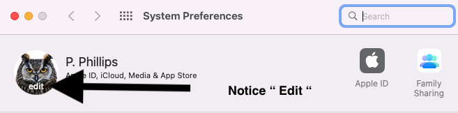 If you hover the cursor over your Pic in System Preferences, the word "Edit" doesn't appear?