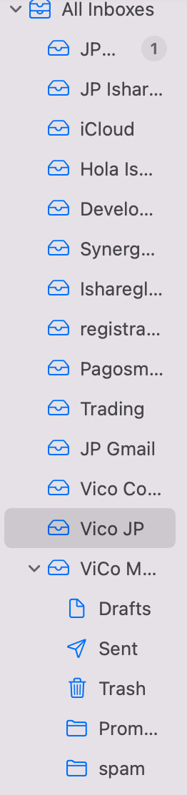 HI! i have several accounts in my apple mail client. Some time ago the arrow to open the "sent" , "spam", etc. folders disappeared. Now the last account I added it appeared again. How can I enable this for all the accounts?
