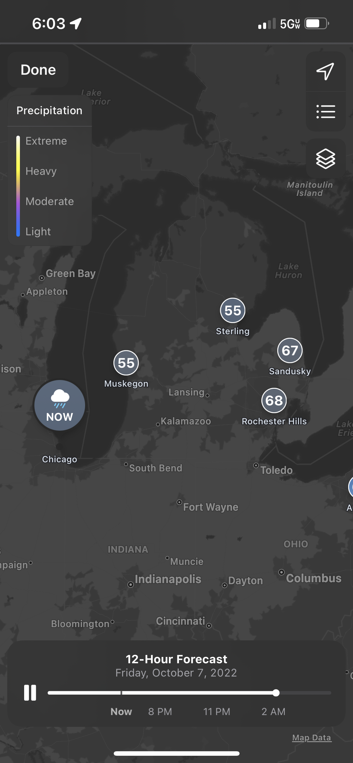 Radar on the weather app