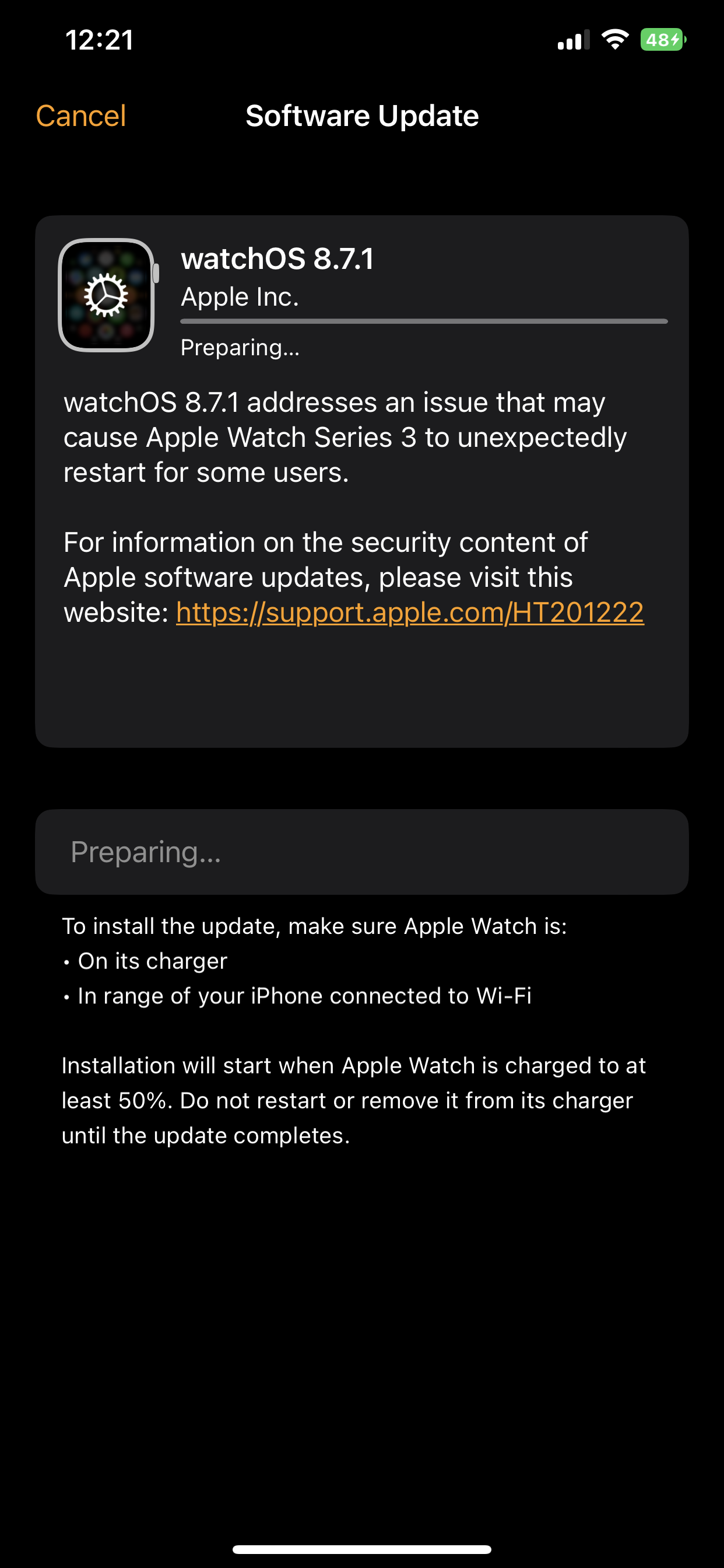 Hello , I cannot able to update watch series 3, stuck on preparing stage