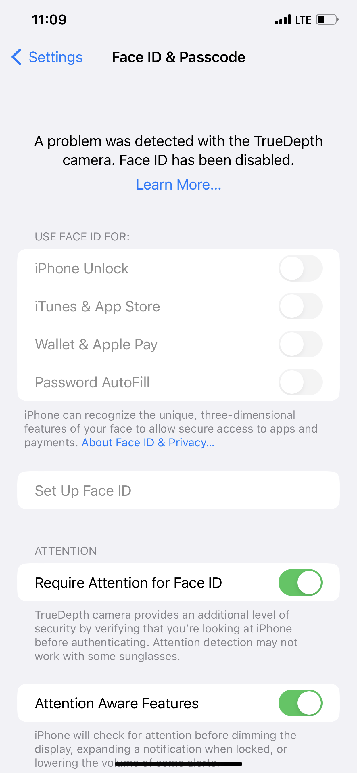 Your TrueDepth camera is broken. Please contact Apple Support.