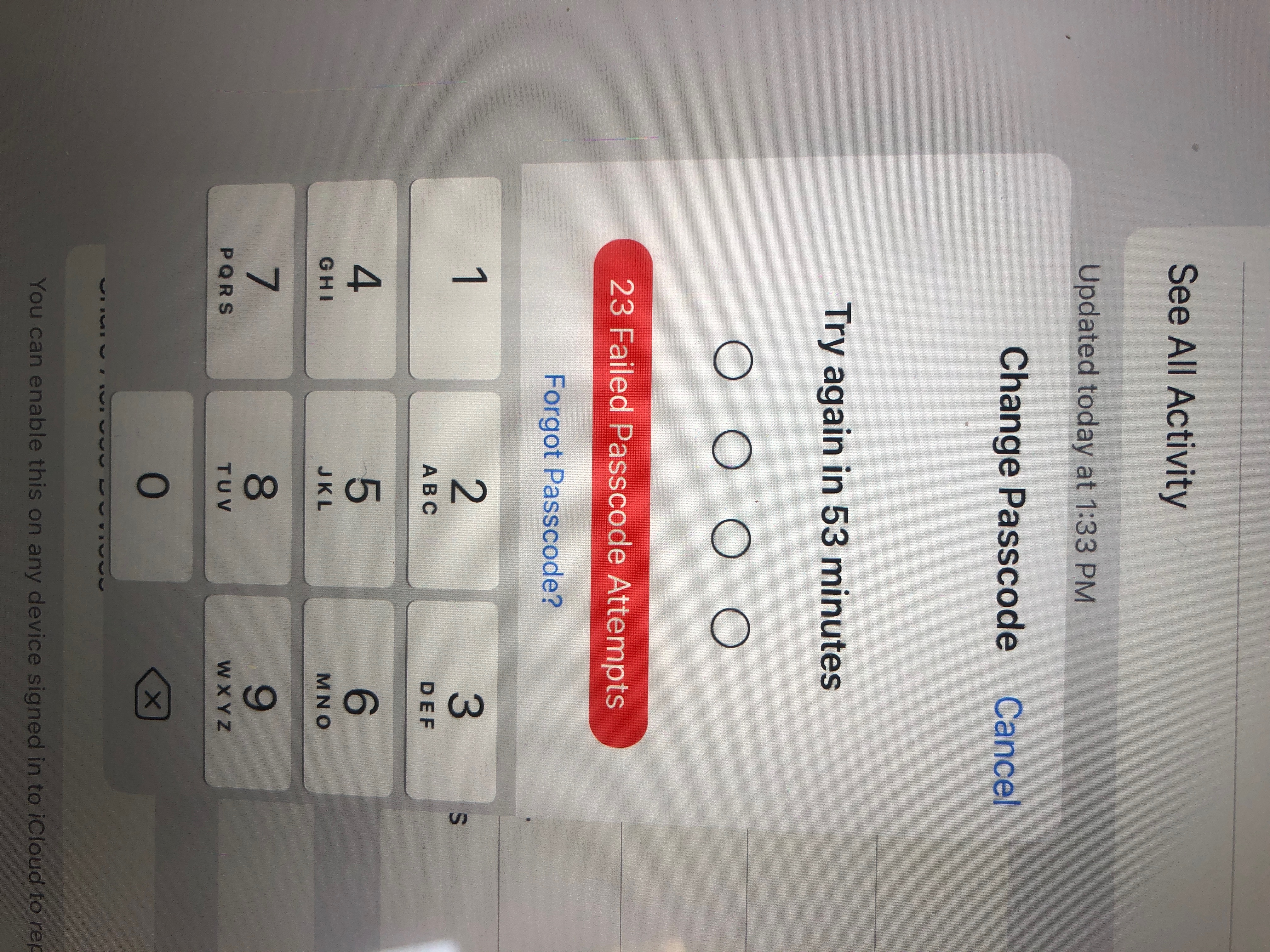 I’ve tried to reset the passcode by following the onscreen instructions. Once I enter in my info as asked it takes me back to the change passcode pop up box and does not allow me to do anything for another 60 minutes.