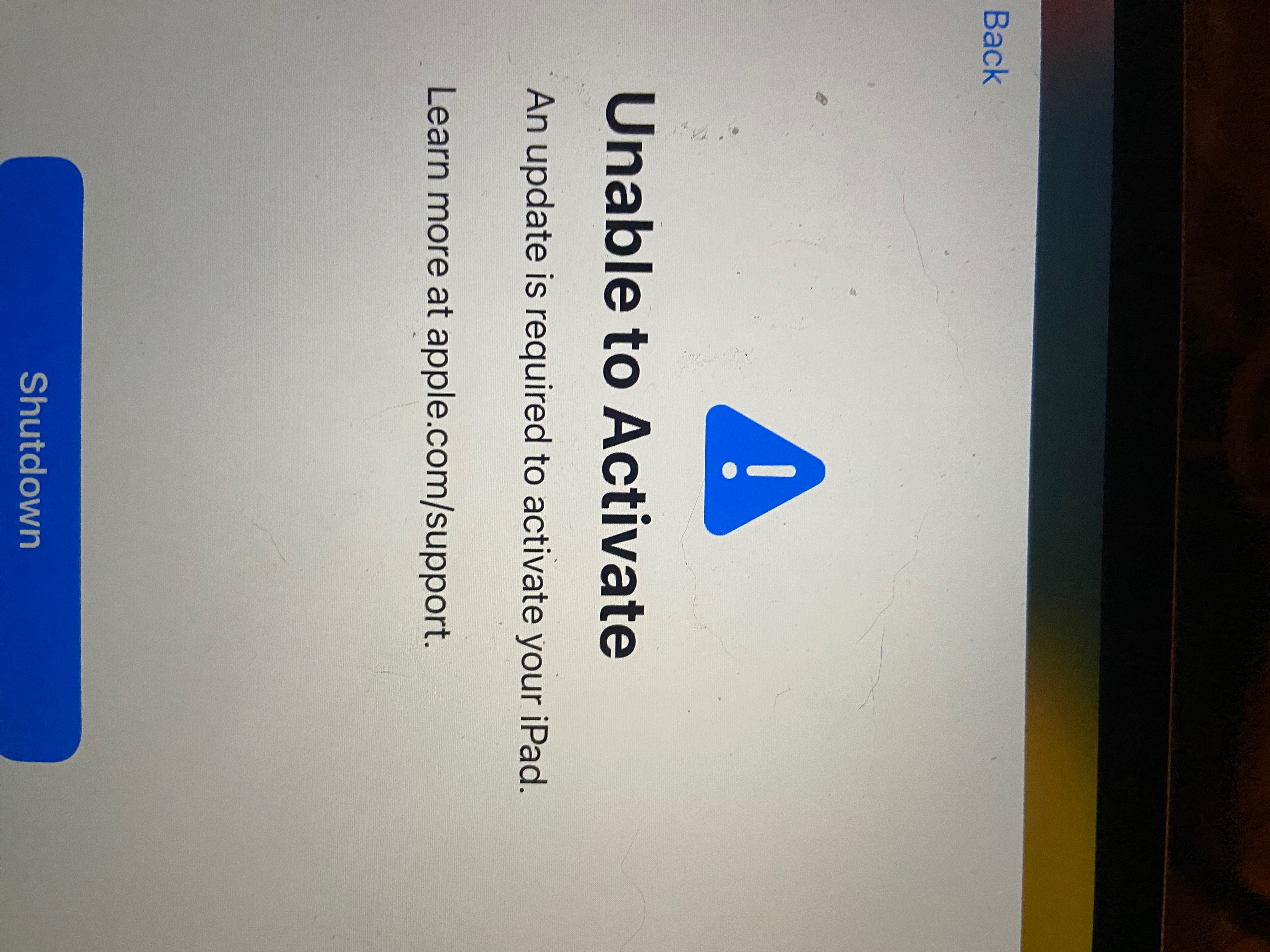 but seems to be trying to restore but at end pops up..Unable to activate..an update is required to activate your ipad modelA1550