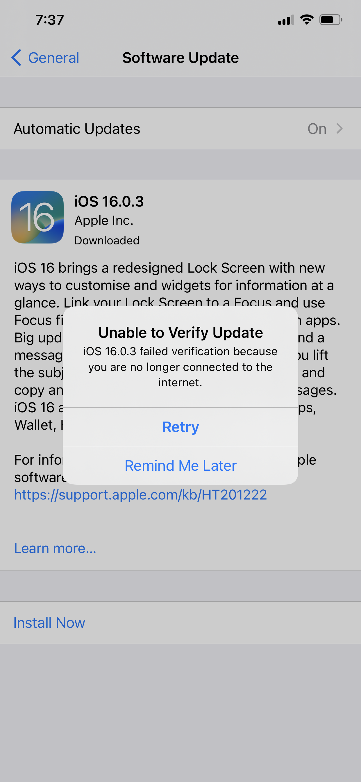 Go to Settings > General > iPhone Storage and tell us how much free space you have. Also, if you are using a VPN turn it off.