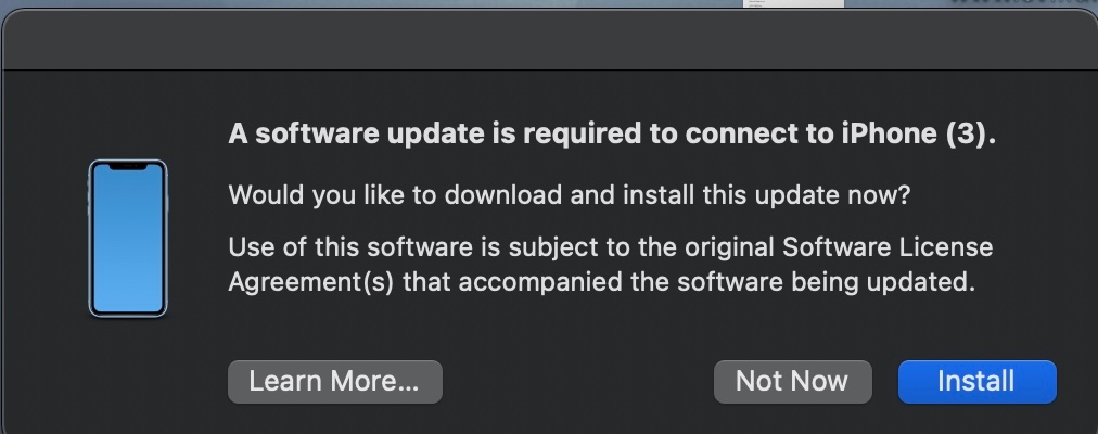 I have updated the software on my iPhone to 16.0.3. My Mac is on Big Sur 11.6.8. The iPhone shows up in the sidebar of my Finder and in Apple Music. So why do I keep getting this popup. Whenever I have clicked "install" in the popup the file never downloads and the popup window does not go away until I restart the Mac.