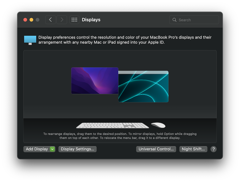 - blacken my MBP (MacBook Pro, running Big Sur) screen when it goes full screen or uses Airplay?