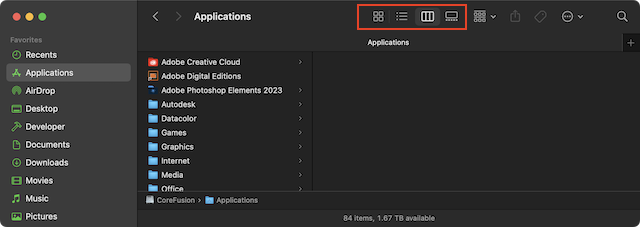 Switching from list view to icon view (or column or gallery) use to take me just one click. Now, I have to click, select from a dropdown and then click again. If there is a way to change this I would certainly like to know.