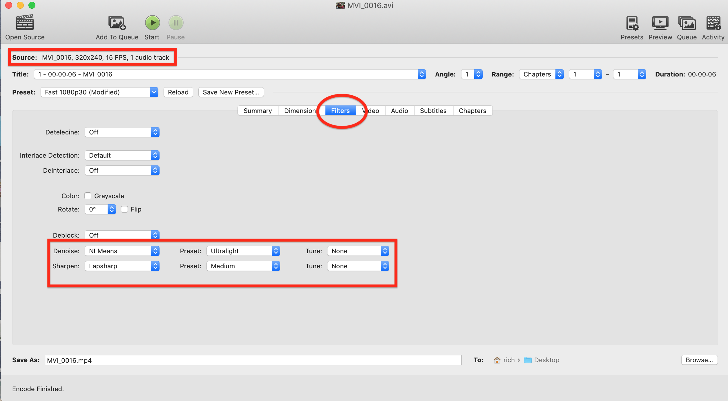 I took an old .avi clip and ran it through Handbrake using its sharpen and noise filters, and noticed some improvement in Handbrake's version versus the original. I wonder if you could run your original clip through Handbrake, using my Handbrake settings (below) and compare Handbrake's rendered version with HitPaw's.