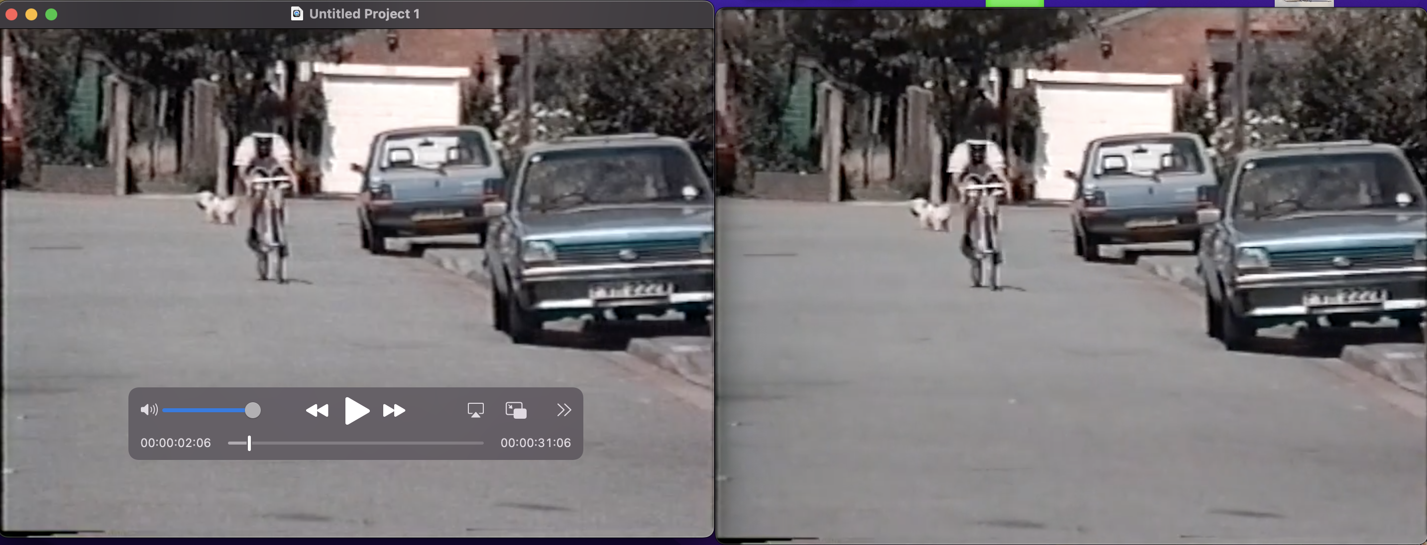 Superficially the video gives the impression of being improved . . . it has much more bite and is very clean . . . however, that bite is not resolution as can be seen from the number plate of the car.