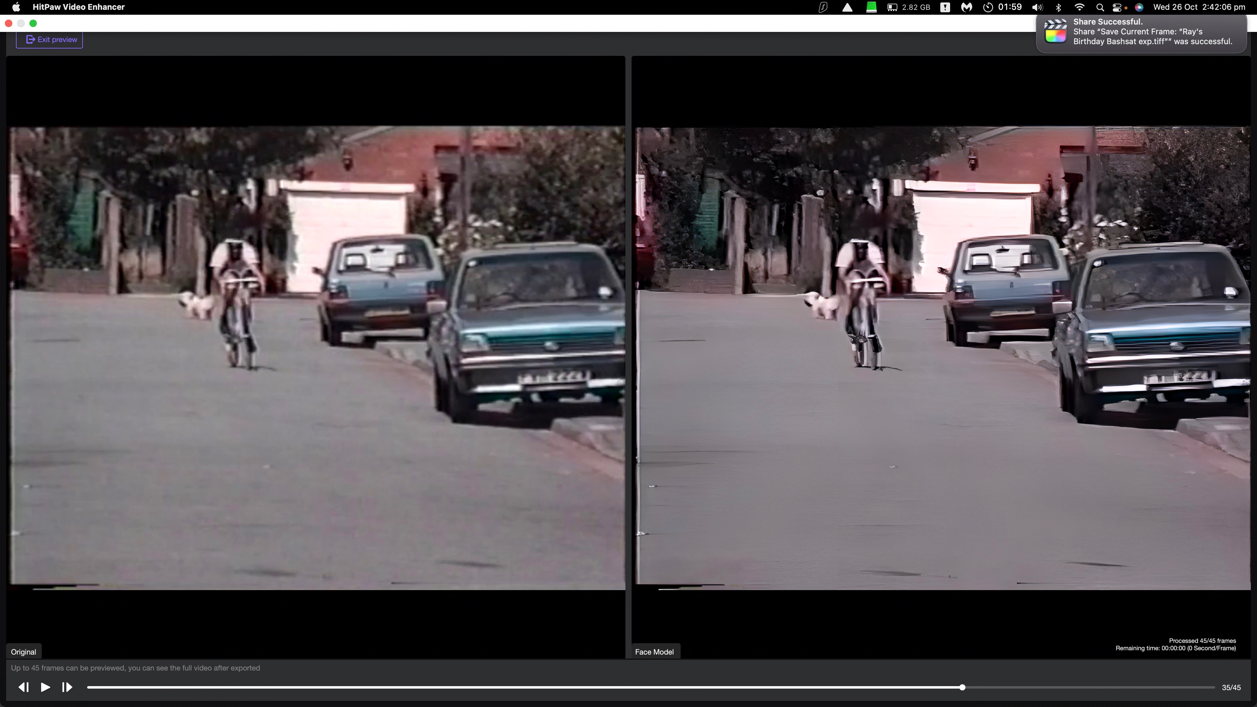 My iMac is fairly powerful but it took around 2 minutes to enhance 2 seconds of VHS quality video.