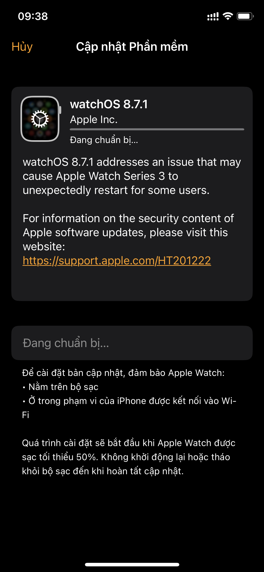 Why do I upgrade apple watch 8.7.1, the app says it's preparing all the time?