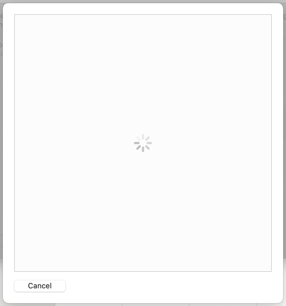 Screenshot 3: When I click "Open browser", this shows really quick before opening Chrome. Chrome does not prompt me to do anything and in case Chrome is already opened, it doesn't open a new tab. When I minimize Chrome to access System Preferences again (cmd-tabbing doesn't work), Cancel is the only option here.