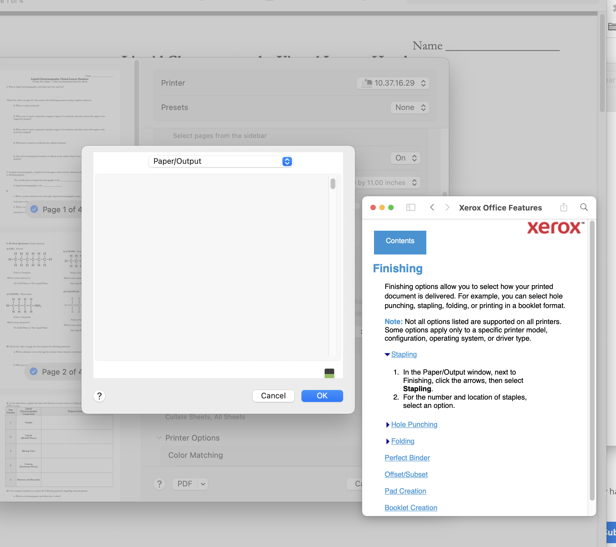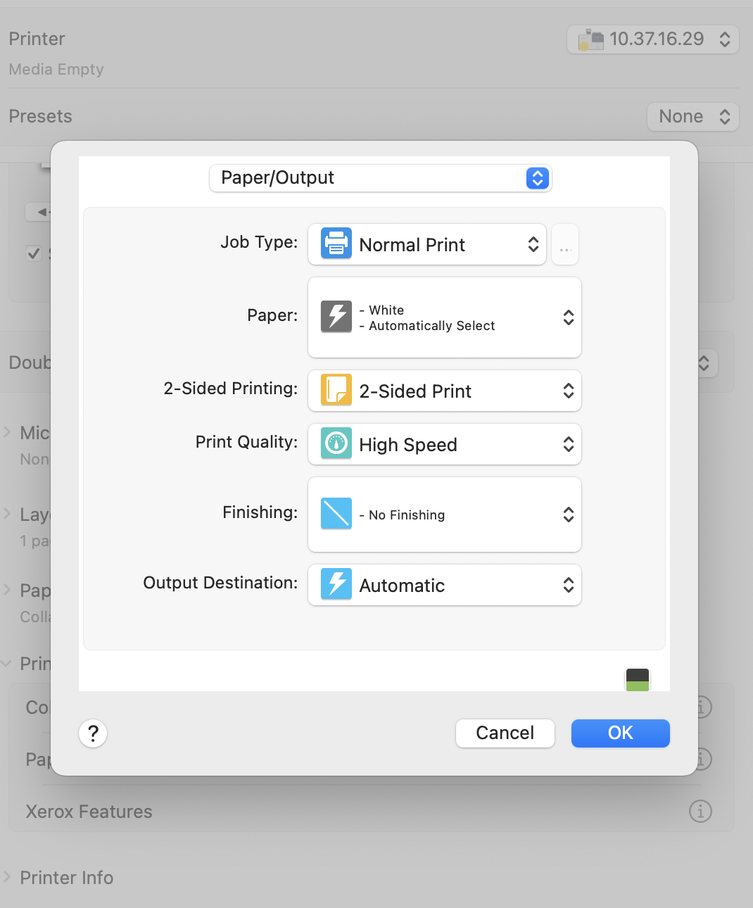 Just upgraded to Ventura and the new print dialog isn't working with the Xerox Printer features. I'm trying to print to a Xerox PrimeLink B9110 have installed the Xerox drivers released 24-Oct-2022. The issue is when the accounting dialog comes up the text input fields are not showing. The fields are still there and if I use the keyboard to tab into the fields and type my accounting code I can get them in, but the text is never visible and it's only because I know the exact keyboard strokes that I can enter them. When I go to use the Printer Features in the print dialog it is also not displaying and I can not select stapling options.