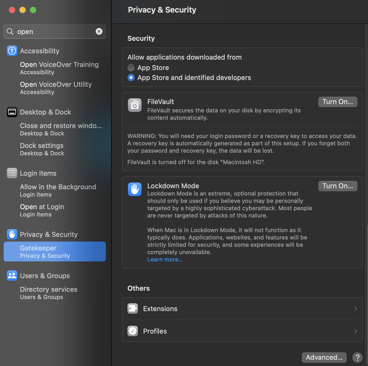 I'm trying to play Bluestacks games on my iMac, on which I recently installed OS 13.0 Ventura. On starting the game now, I'm asked to accept extensions in System Settings. However in the System Settings > Security section, I see only 2 choices for "Allow applications downloaded from":