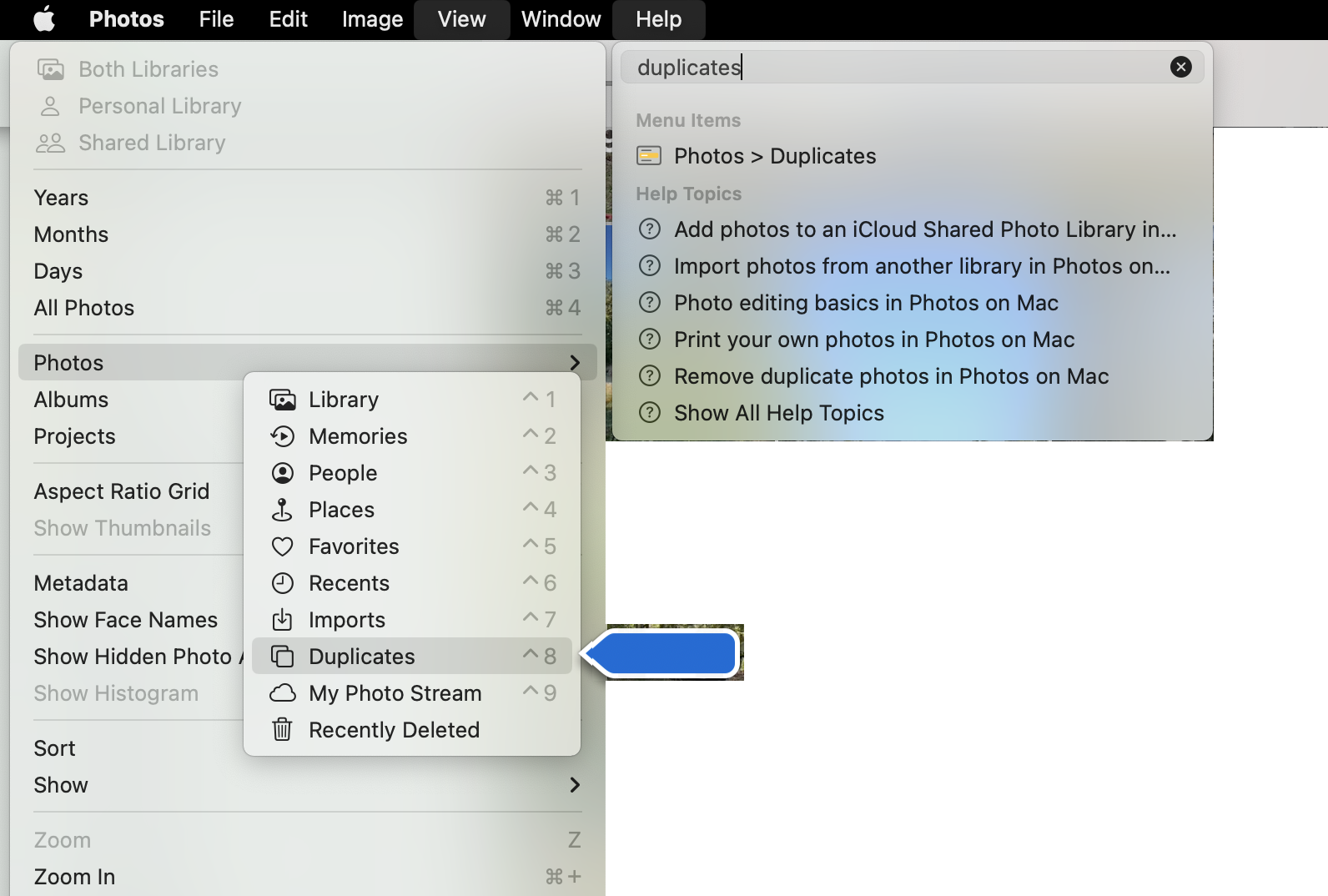 Did you use the Photos>Help menu search "duplicates" ...(?)