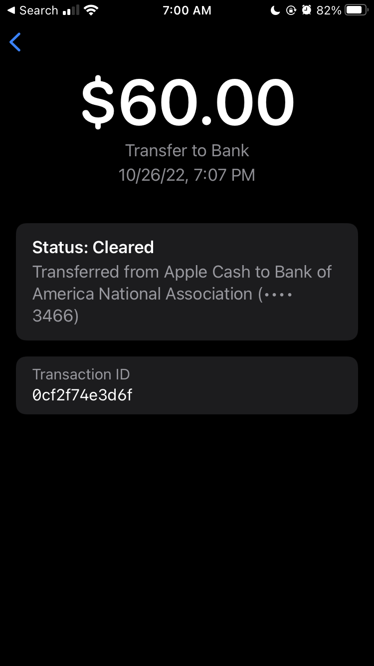 How come I haven’t received my 60$ from Apple Pay yet transfer to my ban